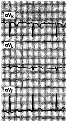 Examine the six extremity leads shown in the figure below. What is the appropriate mean QRS axis?