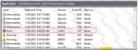 You are reviewing the Application log on a Windows computer. You see an event with an error-level message as shown.