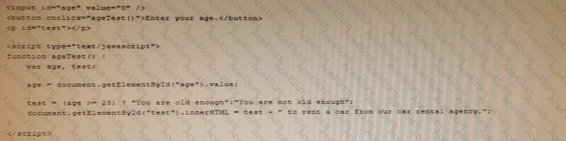 The statement You are not old enough" will be displayed in an alert box.