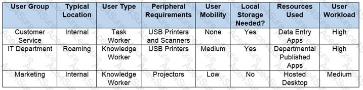 Scenario: A Citrix Architect designing a new Citrix Virtual Apps and Desktops environment needs to determine which endpoints to include. Based on discussions with various departments, the user requirements listed in the exhibit were collected.