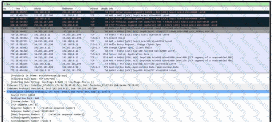 Refer to the exhibit. A communication issue exists between hosts 192.168.0.11 and 34.253.101.190. What is a description of the initial TCP connection?