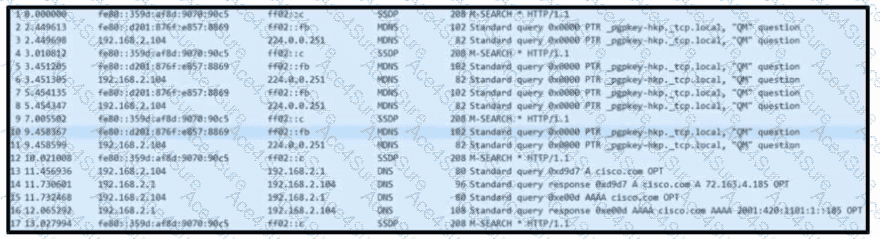 Refer to the exhibit. Based on the .pcap file, which DNS server is used to resolve cisco.com?