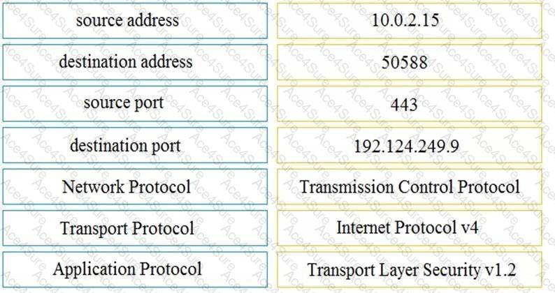 Drag and drop the element name from the left onto the correct piece of the PCAP file on the right.