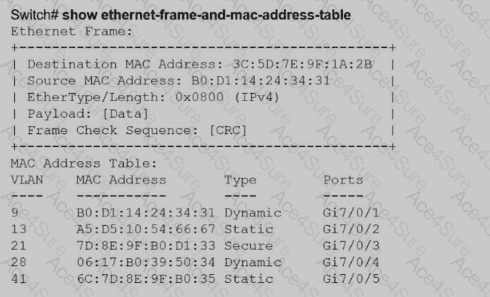 Aswitch receives a frame with the destination MAC address 3C:5D: 7E:9F: 1A:2B.