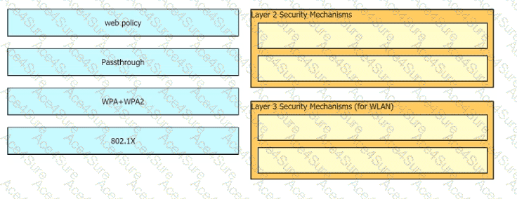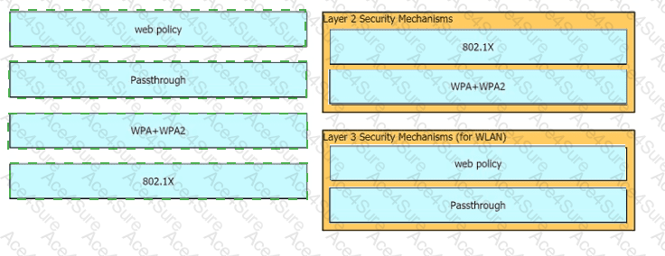 Drag and drop the Cisco Wireless LAN Controller security settings from the left onto the correct security mechanism categories on the right.