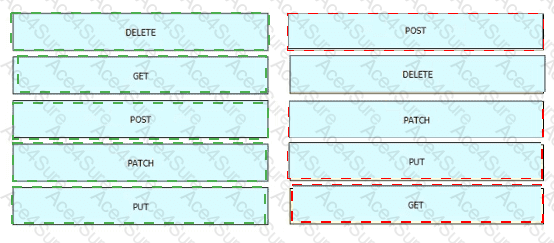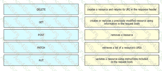 Drag and drop the HTTP methods used with REST-Based APIs from the left onto the descriptions on the right.