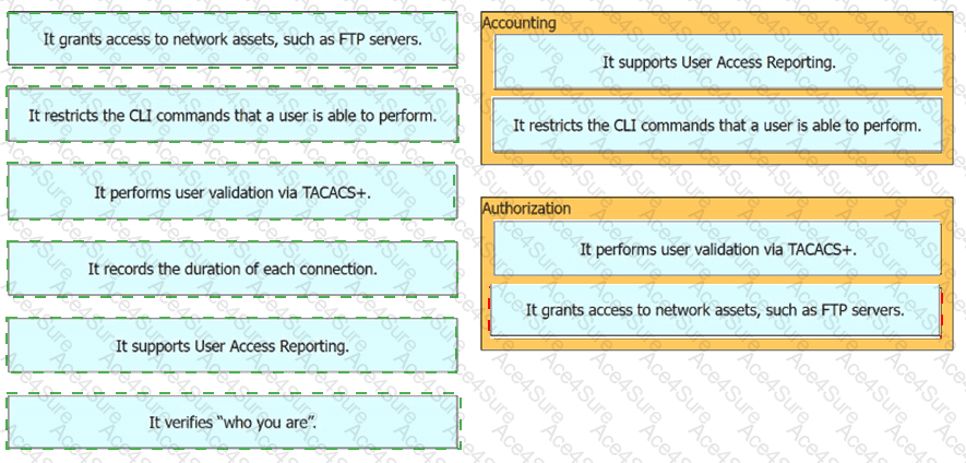Drag and drop the statement about AAA services from the left to the corresponding AAA services on the right.
