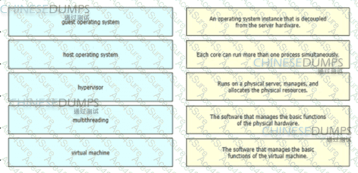 Drag and drop the virtualization concepts from the left onto the matching statements on the right.