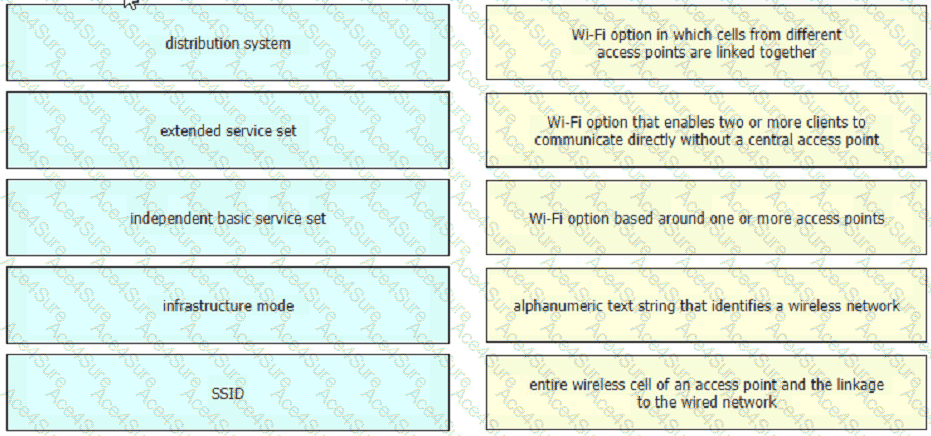 Drag and drop the Wi-Fi terms from the left onto the descriptions on the right.