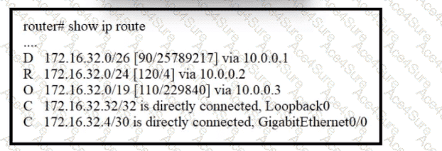 Refer to the exhibit. A packet sourced from 172.16.32.254 is destined for 172.16.32.8. What is the subnet mask of the preferred destination route?