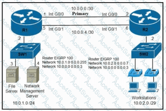 Refer to the exhibit. A secondary route is required on router R1 to pass traffic to the LAN network on R2 if the primary link fails. Which command must be entered to configure the router?