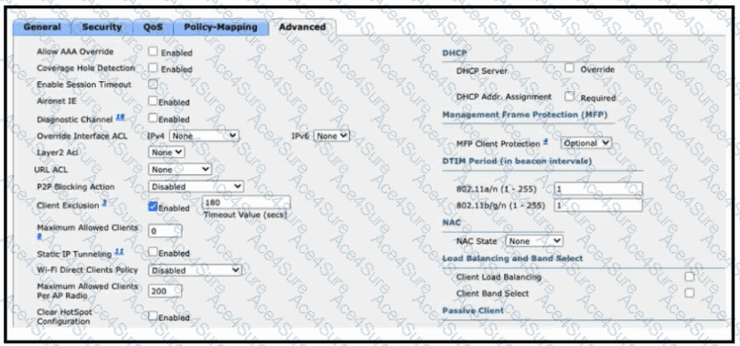 Refer to the exhibit. An administrator is configuring a new WLAN for a wireless network that has these requirements: