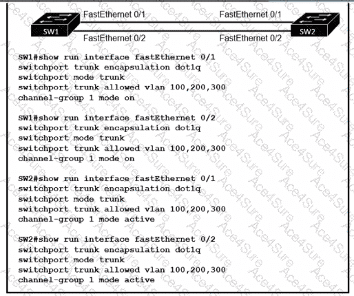 An engineer built a new L2 LACP EtherChannel between SW1 and SW2 and executed these show commands to verify the work. Which additional task allows the two switches to establish an LACP port channel?