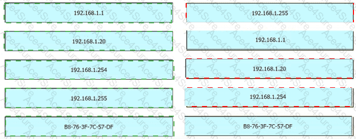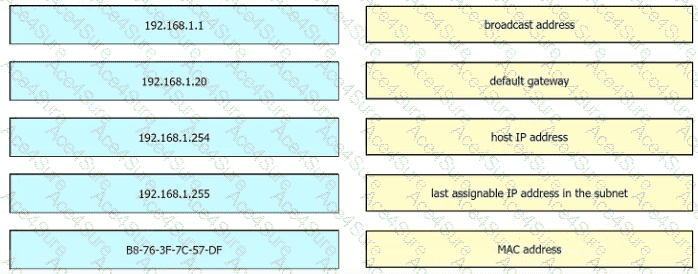 An engineer is tasked with verifying network configuration parameters on a client workstation to report back to the team lead. Drag and drop the node identifiers from the left onto the network parameters on the right.