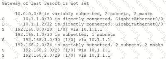 An engineer is checking the routing table in the main router to identify the path to a server on the network. Which route does the router use to reach the server at 192.168.2.2?