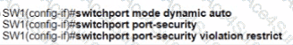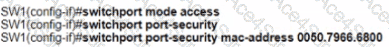 An engineer must configure the interface that connects to PC 1 and secure it in a way that only PC1 is allowed to use the port No VLAN tagging can be used except for a voice VLAN. Which command sequence must be entered to configure the switch?