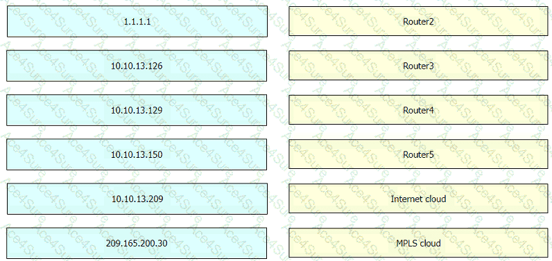 Drag and drop the destination IPs from the left onto the paths to reach those destinations on the right.
