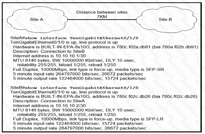 Site A was recently connected to site B over a new single-mode fiber path. Users at site A report Intermittent connectivity Issues with applications hosted at site B. What is the reason for the problem?
