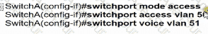 Switch A is newly configured. All VLANs are present in the VLAN database. The IP phone and PC A on Gi0/1 must be configured for the appropriate VLANs to establish connectivity between the PCs. Which command set fulfills the requirement?