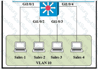 The entire contents of the MAC address table are shown. Sales-4 sends a data frame to Sales-1.