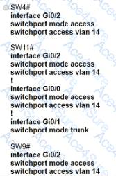 • The SW4 interface Gi0/1 and Gi0/0 on SW9 have been configured