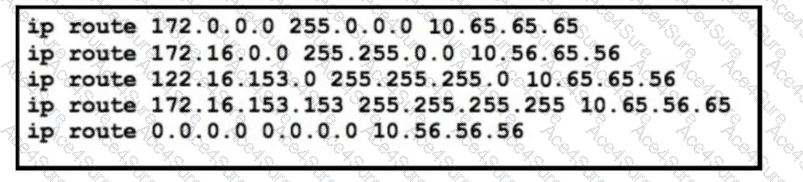Refer to the exhibit. The static routes were implemented on the border router. What is the next hop IP address for a ping sent to 172.16.153.154 from the border router?