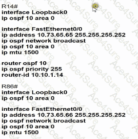 Which configuration allows routers R14 and R86 to form an OSPFv2 adjacency while acting as a central point for exchanging OSPF information between routers?