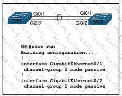 Refer to the exhibit. Which configuration enables SW2 to establish an LACP EtherChannel?