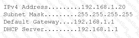 A user with a self-configured, static IP address cannot connect to the internet. The technician runs an ipconfig command and receives the following output: