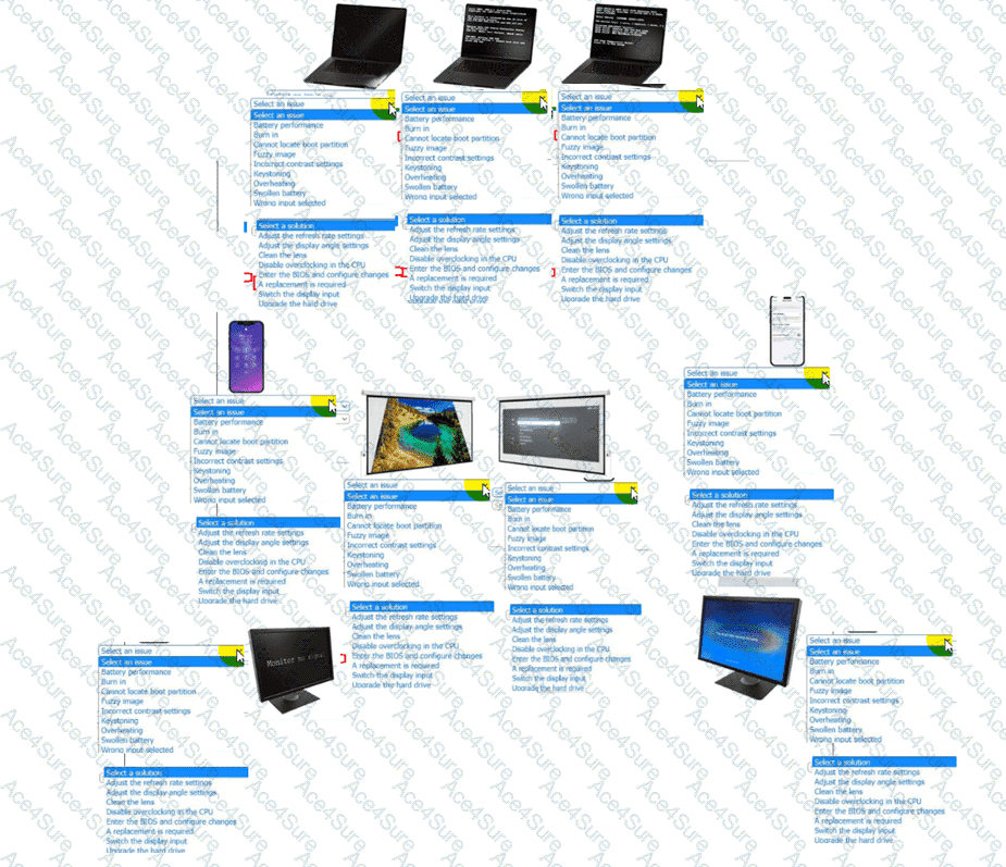 Click on each device to review the issue. Then select the appropriate issue and solution