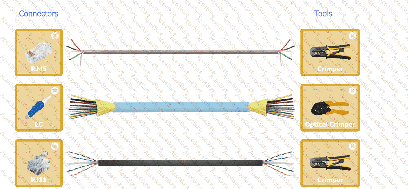An access point was moved and no longer has connectivity. Connect the access point, patch panel, and switch by clicking the (+) to select the appropriate cable end for each corresponding location to create a link.