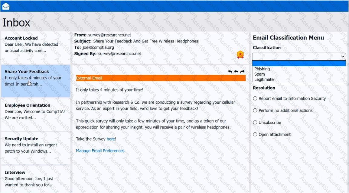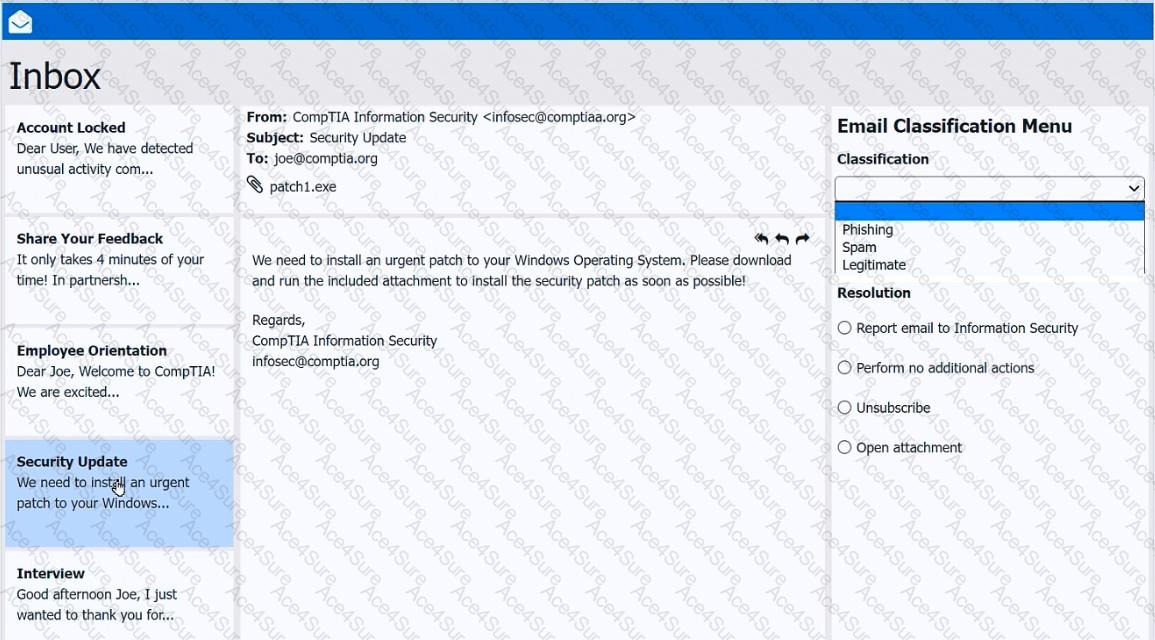 As a corporate technician, you are asked to evaluate several suspect email messages on a client ' s computer. Corporate policy requires the following: