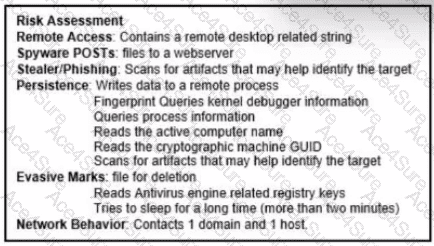 The exhibit lists several behaviors under categories such as Remote Access, Stealer/Phishing, Persistence, and Evasive Marks. Notably, under “Persistence” it states: