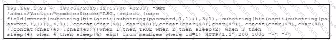 indicates that the attacker is probing the backend database character by character and using response timing to infer whether conditions are true or false. This is a well-known exploitation method used when error messages or query output are suppressed by the application.