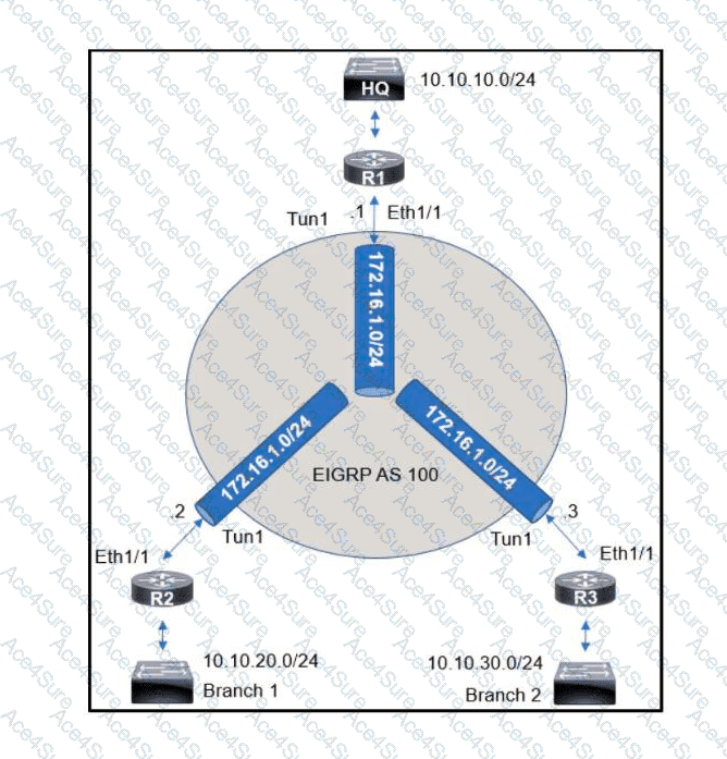 An engineer sets up a DMVPN connection to connect branch 1 and branch 2 to HQ branch 1 and branch 2 cannot communicate with each other. Which change must be made to resolve this issue?