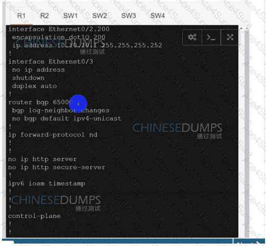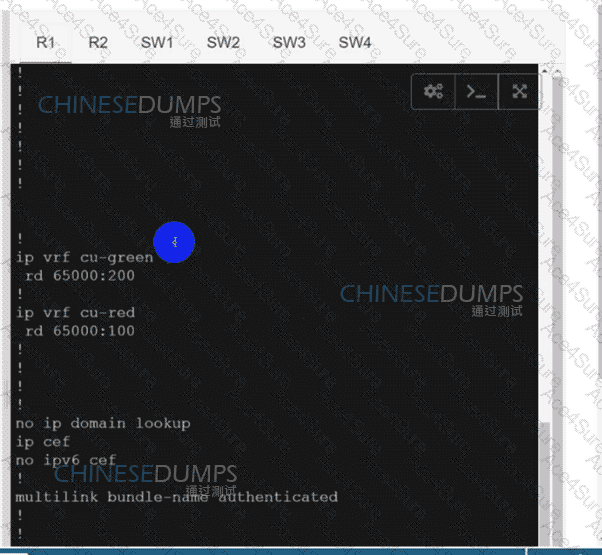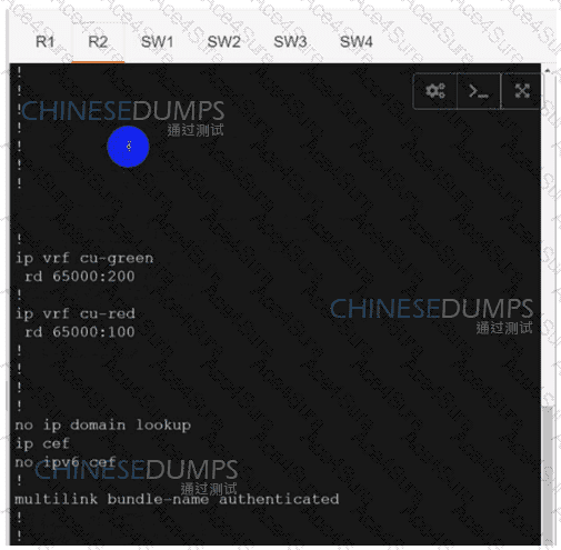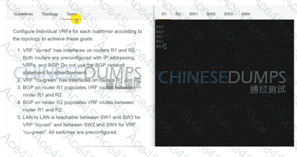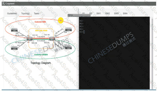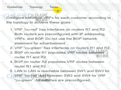 Configure individual VRFs for each customer according to the topology to achieve these goals :R1R2SW1SW2SW3