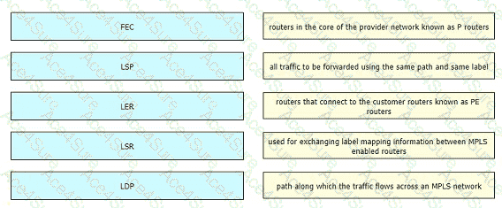 Drag and drop the descriptions from the left onto the corresponding MPLS components on the right.