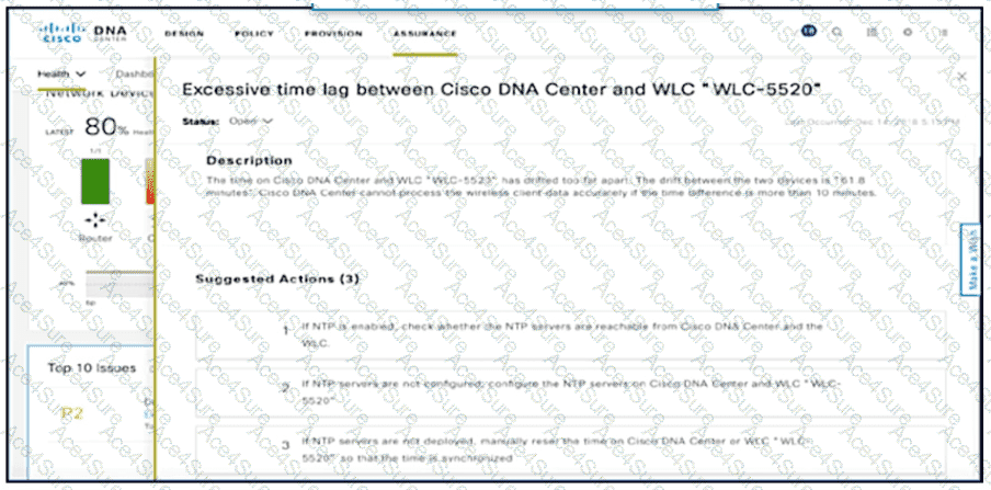 Exhibit:NTP is configured across the network infrastructure and Cisco DNA Center.