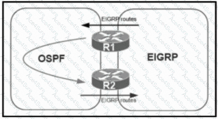 Refer to the exhibit. A network administrator configured mutual redistribution on R1 and R2 routers, which caused instability in the network. Which action resolves the issue?