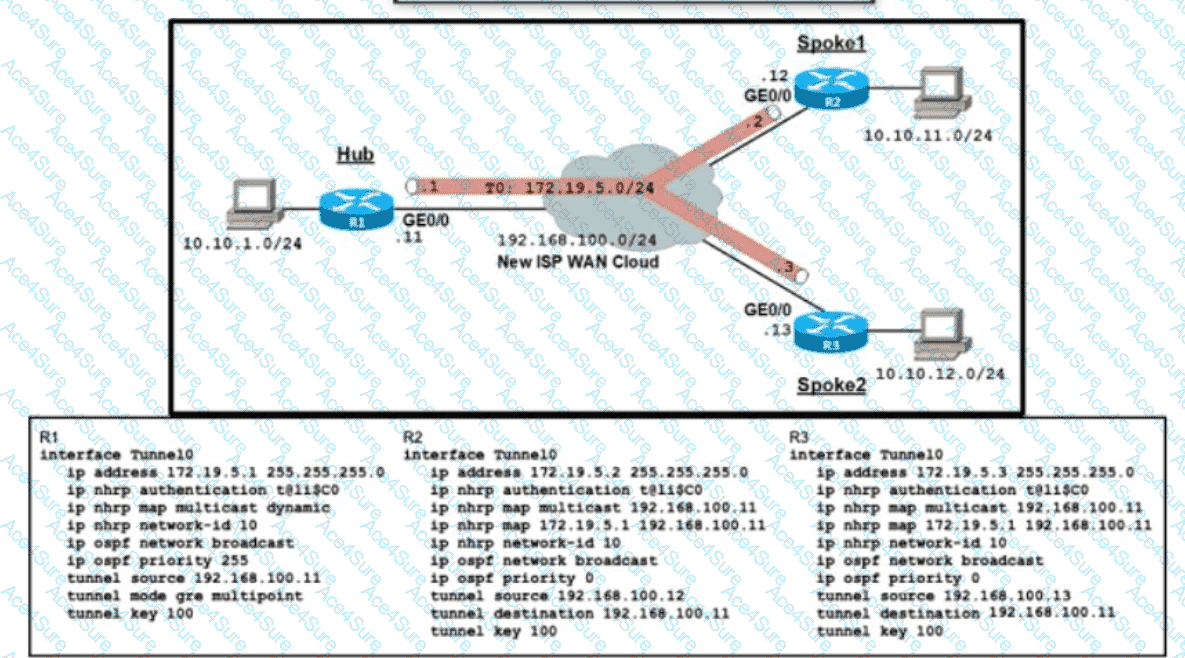 Refer to the exhibit. An organization is installing a new L3 MPLS link to establish DM VPN Phase 2 tunnels between the hub and two spoke routers Which additional configuration should the engineer implement on each device to achieve optimal routing between the spokes?