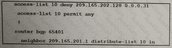 A company with autonomous system number AS65401 has obtained IP address block 209.165.200.224/27 fro, ARIN. The company needed more IP addresses and was assigned block209.165.202.128/27 from ISP2. An engineer is ISP1 reports they are receiving ISP2 routes from AS65401. Which configuration onR1 resolves the issue?