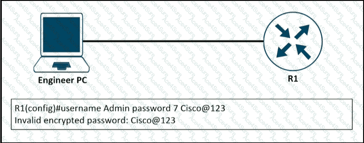 An engineer is trying to add an encrypted user password that should not be visible in the router configuration. Which two configuration commands resolve the issue? (Choose two)