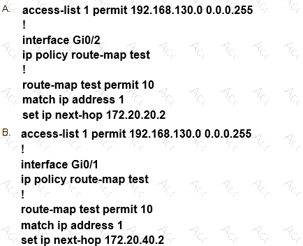 Which configuration configures a policy on R1 to forward any traffic that is sourced from