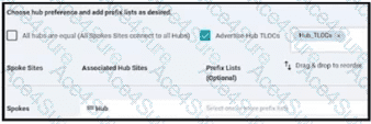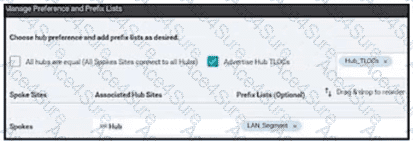 After deploying Cisco SD-WAN the company realized that by default, all sites built direct IPsec VPN tunnels to each other In their previous topology all spoke sites used the head office as their next hop for the LAN segment that belongs to network 40.0.0.0/16 The company wants to deploy its previous policy, which allows the 40.0.0.0/16 network that originates at the hub to advertise to the spokes. Which configuration meets the requirement'?