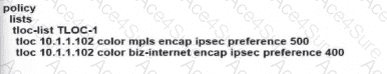 Understanding TLOCs (Transport Locator): TLOCs represent the transport network paths (MPLS, Internet, etc.) available for SD-WAN. The preference values assigned to TLOCs determine their priority. A lower preference value indicates a higher priority.