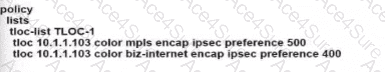 tloc 10.1.1.102 color mpls encap ipsec preference 500