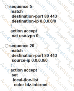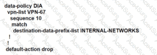 An engineer modifies a data policy for DIA in VPN 67. The location has two Internet-bound circuits. Only the web browsing traffic must be admitted for DIA. without further discrimination about which transport to use.