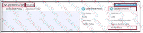 Centralized Policy: This type of policy is applied at the controller level and affects multiple devices in the SD-WAN fabric. It allows the control of routing behavior across the entire network.
