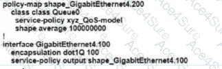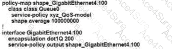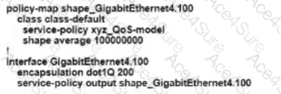 Refer to the exhibit An engineer is configuring a QoS policy to shape traffic for VLAN 100 on a subinterface Which policy configuration accomplishes the task?