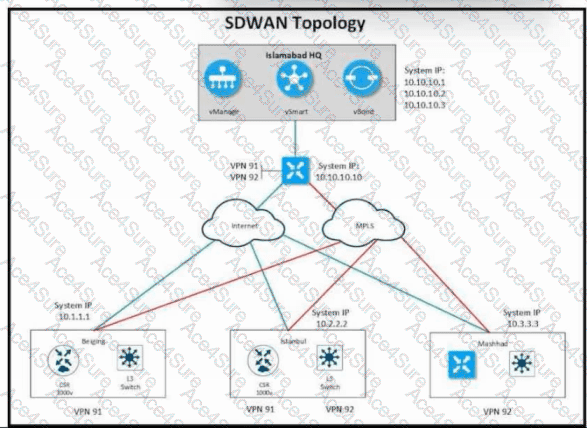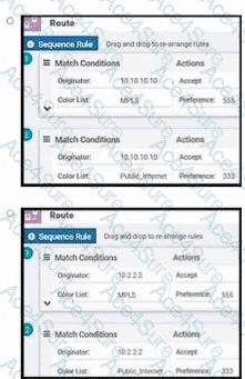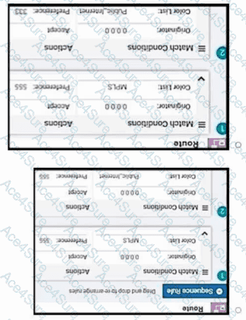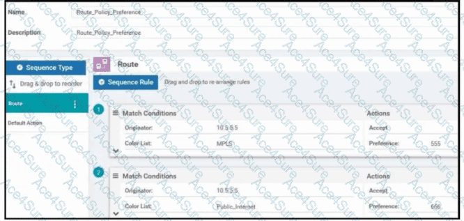Refer to the exhibit. Company ABC has a hub-and-spoke topology in place and currently is load balancing their data traffic at the hub site over MPLS and the public Internet. The leased circuit must be preferred over the shared circuit. Which configuration meets the requirement?
